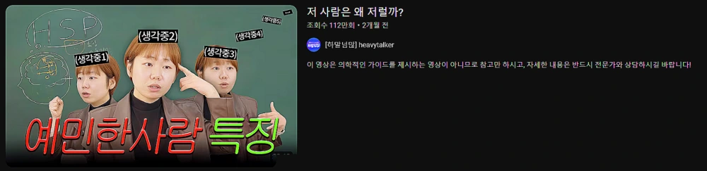 HSP 테스트를 나를 좀 더 깊이 이해하고, 내 삶의 균형을 찾는 기회로 활용해 보면 좋을 것 같습니다. HSP를 이해하는데 아래 영상이 도움이 될 것 같아서 영상 링크 남겨드립니다.