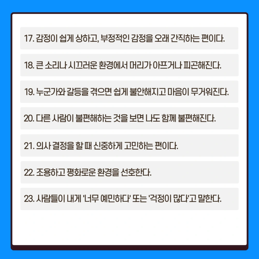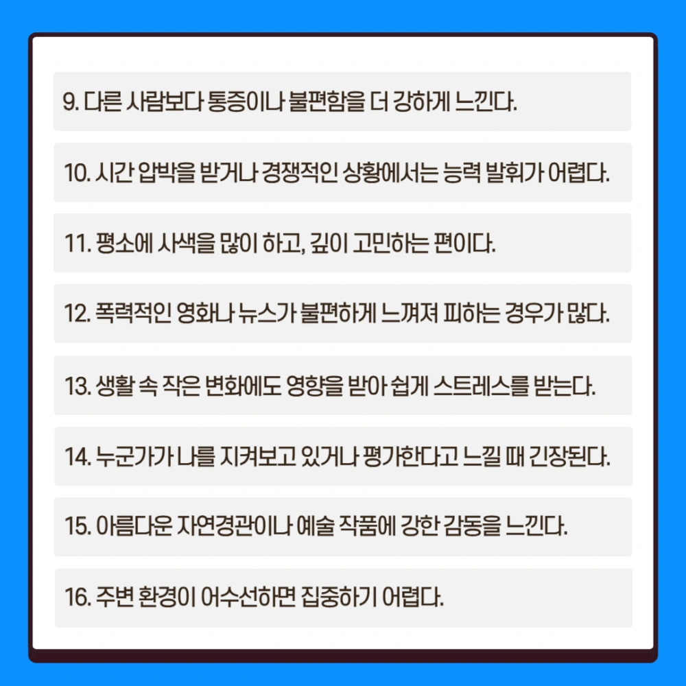 • 13개 이상 → HSP일 가능성이 높음
