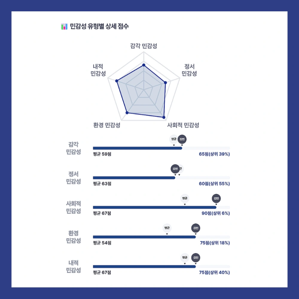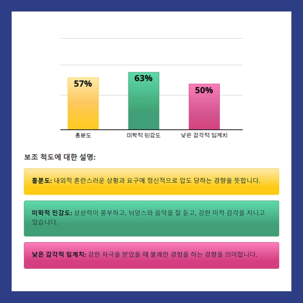 HSP 테스트는 단순한 재미가 아니라 자신의 성향을 이해하고 관리하는 도구입니다. 혹시 본인의 결과가 높게 나왔다면, 이를 약점이 아닌 강점으로 활용하는 것이 중요합니다.